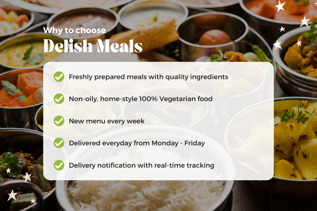 Welcome to Delish Meals, where we craft delicious dishes using quality ingredients. Our fresh, healthy, and non-oily tiffin meals are prepared daily. Choose from our diverse meal packages, with a menu that changes weekly for a variety of homely flavors every day. Enjoy free delivery across GTA